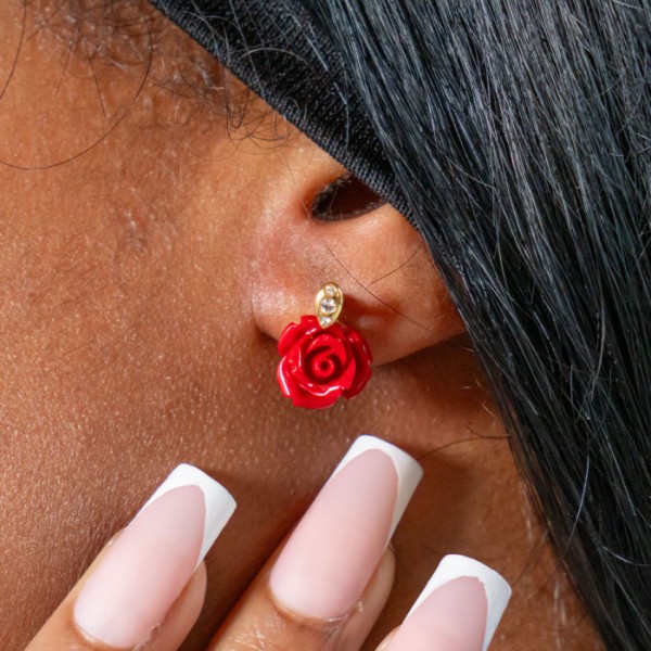 Step into the magical world of Disney with these earrings inspired by the iconic enchanted rose from Beauty and the Beast. Featuring delicate red petals, they capture the timeless romance of the story. A refined jewel perfect for Disney fans, collectors, or as a magical and elegant gift filled with charm and fantasy.