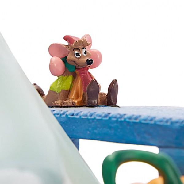 Cinderella curtsies gracefully, holding out her flowing gown as she pauses beside a bench where Gus and Jacques keep her company. Set upon a round base with cobbled floor effects, sparkling stones, and a tiny pumpkin reminiscent of her transformation, this beautifully sculpted figurine captures a quiet, magical moment from her story. With delicate details and her classic gown, it brings the elegance and heart of Disney’s beloved princess to life.